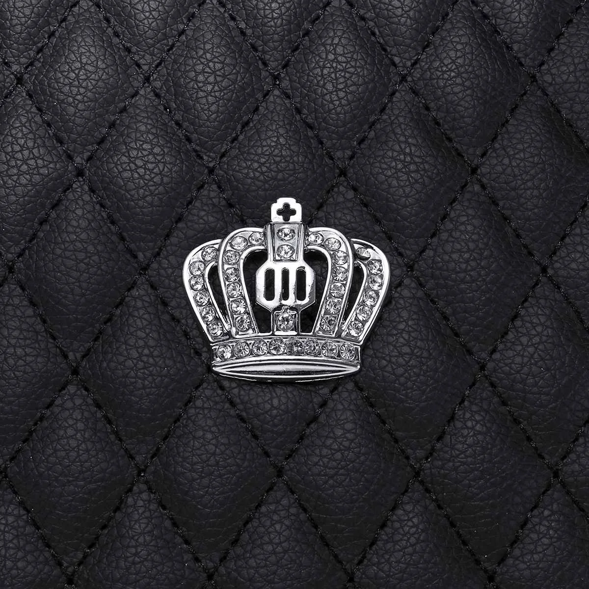 Description of Black PU Leather Car Center Console Armrest Box Pad Cover Protection Cushion Crown Diamond Crystal Rhinestone Arm Rest Cushion