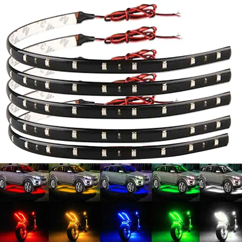 2pcs 30CM Flexible 15 LED SMD Waterproof Strips 5050 Bright Lights 12V For Cars Trucks Boat Motorcycle QP2